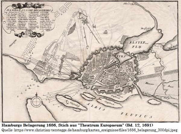 [8] Kurze Relation was sich in währender Berenung der Stadt Hamburg … zwischen Ihrer Königlichen Majestät von Dännemark und obgedachter Stadt begeben, 1686, S. 5.