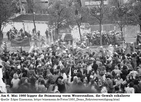 Heute vor 40 Jahren sollten im Bremer Weserstadion 1200 junge Rekruten der Bundeswehr im Rahmen des Großen Zapfenstreichs ihr Gelöbnis leisten. An diesen Tag sollten sich noch alle Anwesenden lange erinnern. Im Nachhinein allerdings weniger wegen dem Zeremoniell selbst, als vielmehr wegen der Begleitumstände. – Von Florian Tropp Für Frank Lehmann ging an diesem 6.„1980: Autonomer Zapfenstreich in Bremen“ weiterlesen